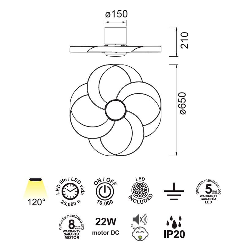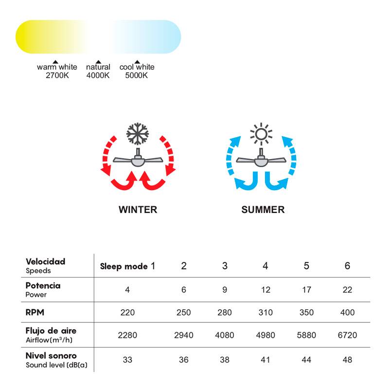 - Motor DC silencioso con un nivel de ruido de 48dB max.